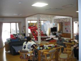 □ 施設概要 建物延べ床面積:445.00㎡(134.63坪)、1階241.50㎡(73.06坪)、2階203.50㎡(61.57坪) 総面積:566.91㎡(171.51坪) 建物構造:木造2階建(2006年2月完成) 居室数及び面積:14室9.25㎡~10.25㎡(5.6帖~6.2帖) 食堂兼居間面積:77.87㎡(47.2帖) ※ 健康管理について…通院など必要な場合には、ご家族へ連絡いたします。ご家族様が対応できない場合は、当ホームが対応します。 協力医療機関:萩野医院、あべ内科、吉田デンタルクリニック 医療連携:繋温泉病院訪問看護ステーション |